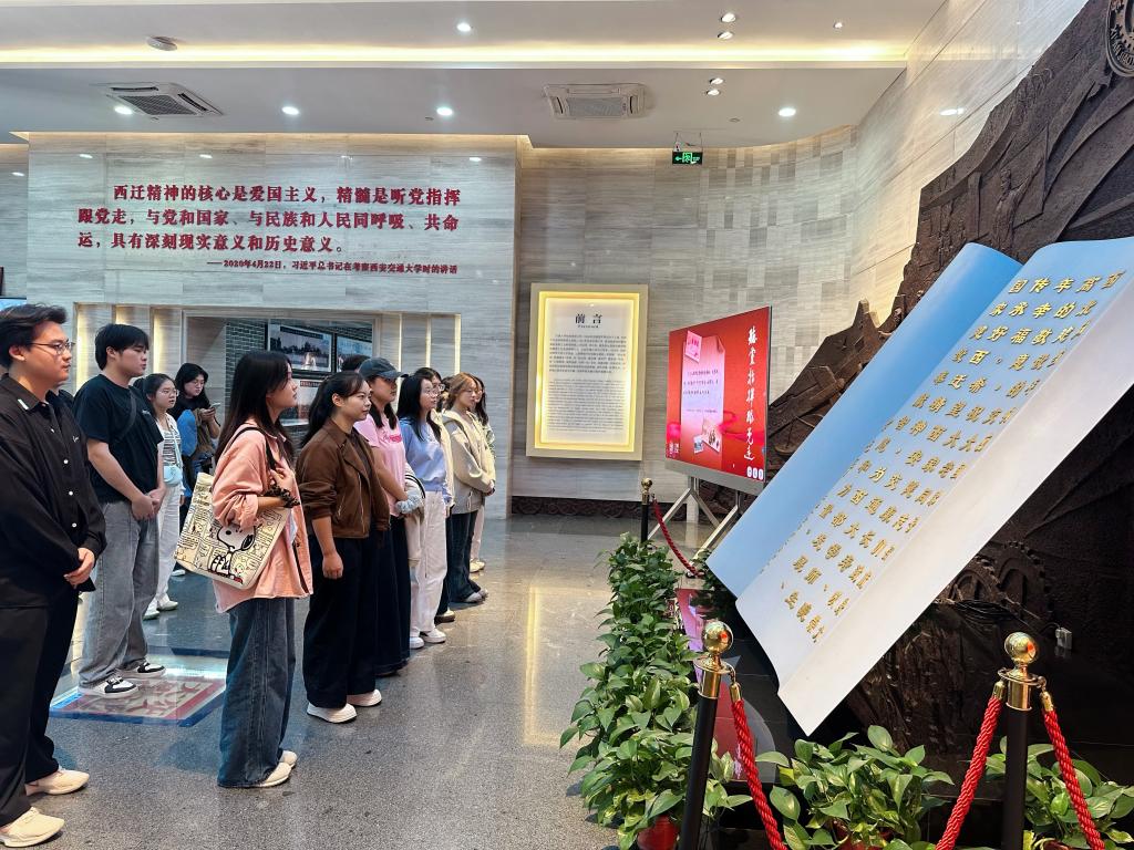 为纪念抗日战争和世界反法西斯战争胜利80周年,深入推进思政教育走深走实,9月24日下午,生物食品与化学学院团总支积极响应校团委“行走的思政课”活动部署,组织团员代表走进交大西迁博物馆,在历史与现实的交融中传承红色基因,凝聚青春力量。