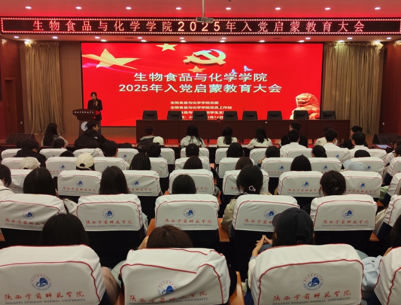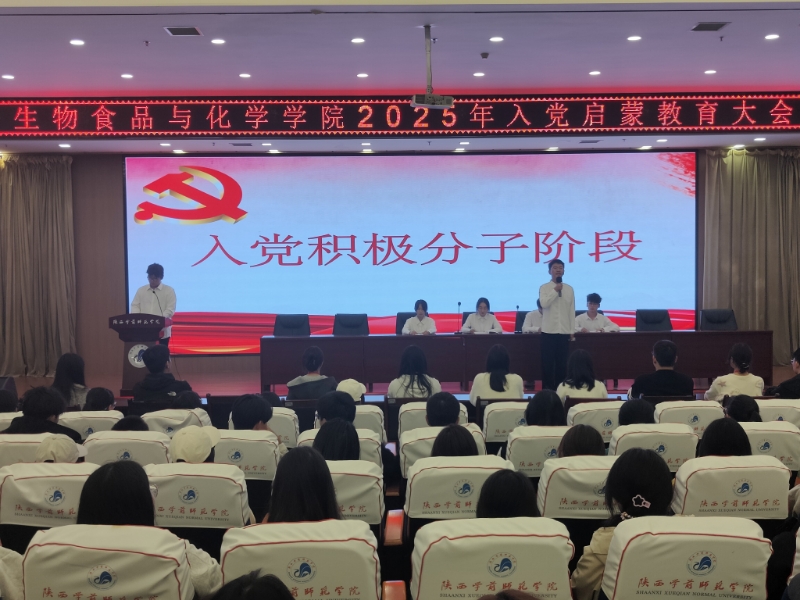 入党启蒙教育是端正学生入党动机、培养合格党员的重要举措,为了引导2025级新生深入了解党的光辉历程,鼓励学生坚定入党信念,10月15日晚7点,生物食品与化学学院在图书馆学术报告厅举办了2025年入党启蒙教育大会。本次会议由学生第一党支部书记李佳主持,学院党委副书记彭晓江、学生第二党支部书记王媛莉以及我院2025级全体新生450余人参加了本次教育大会。