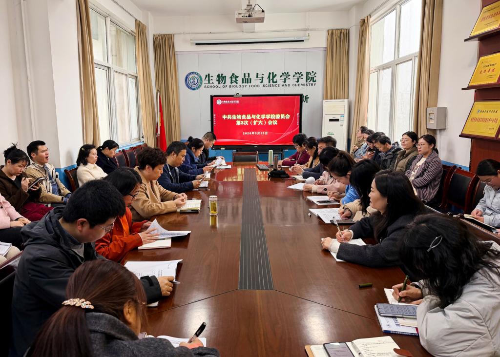 3月13日下午,生物食品与化学学院在积学楼召开党委(扩大)会议,对学院学习教育工作进行安排部署。学院党委书记高萍主持会议并作动员讲话,全体班子成员、党委委员,各支部书记,全体教师党员、部分学生党员参加会议。